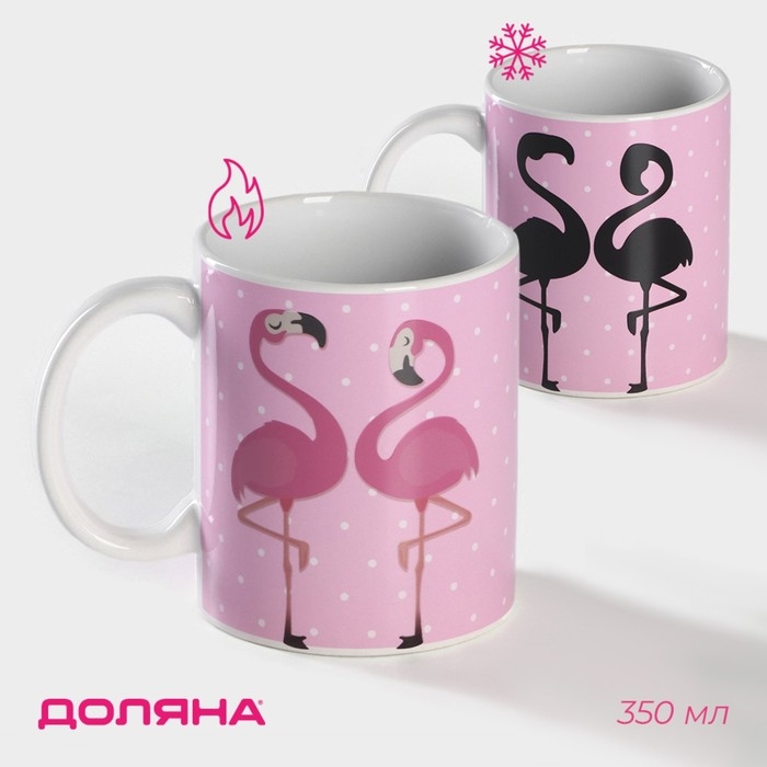 Кружка - хамелеон керамическая Доляна «Фламинго», 350 мл, цвет розовый