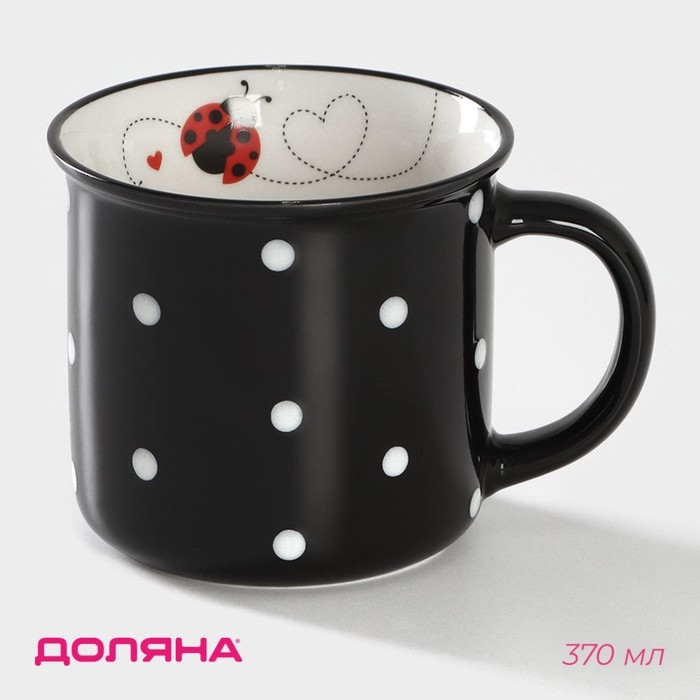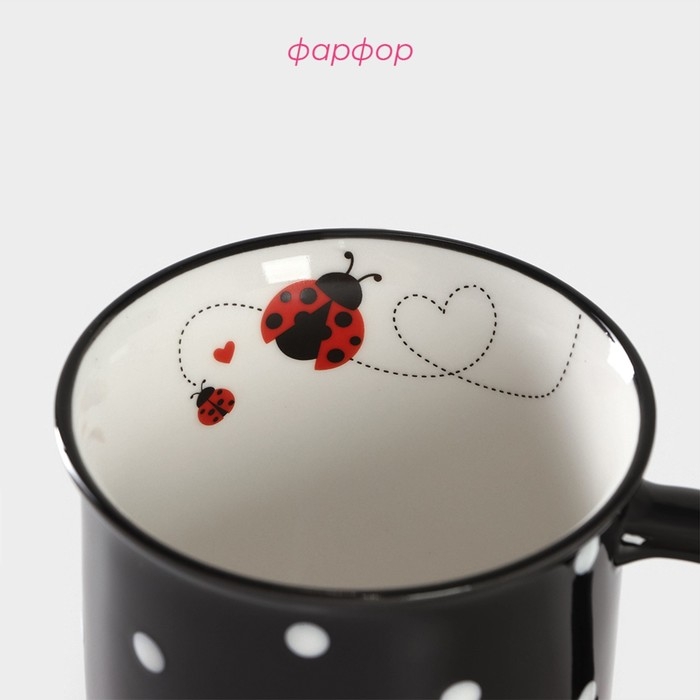 Кружка фарфоровая Доляна «Божья коровка», 370 мл, цвет чёрный