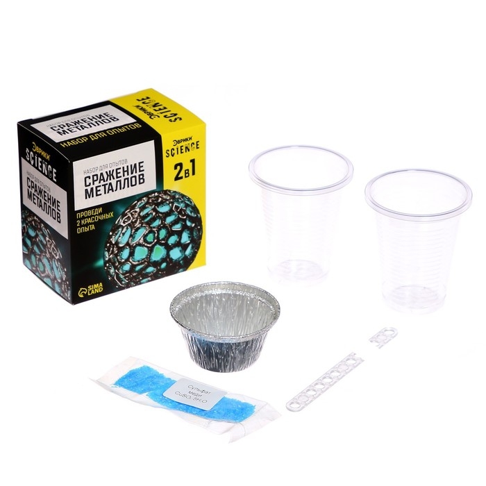 С набором для опытов «Эврики» ребёнок узнает об удивительных свойствах веществ, проведёт два увлекательных эксперимента и удивит друзей.