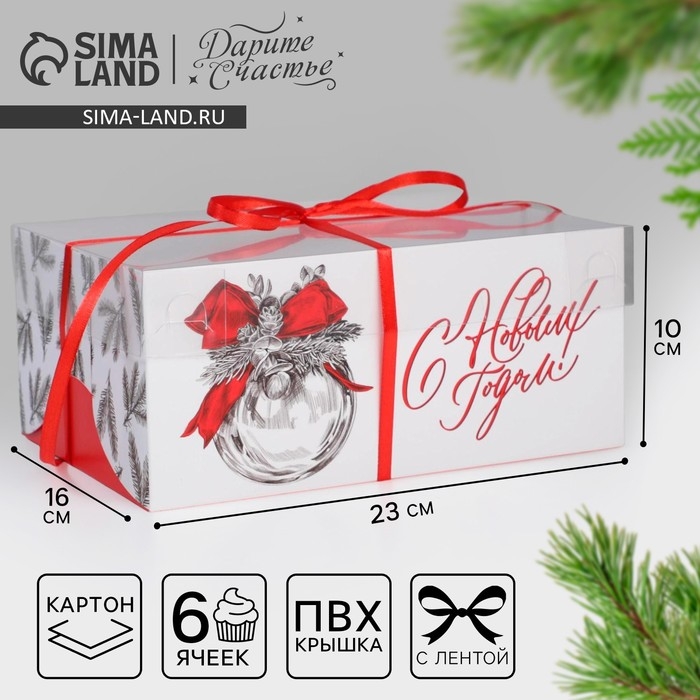 Коробка для капкейков «С Новым Годом» 16 х 16 х 10 см, Новый год