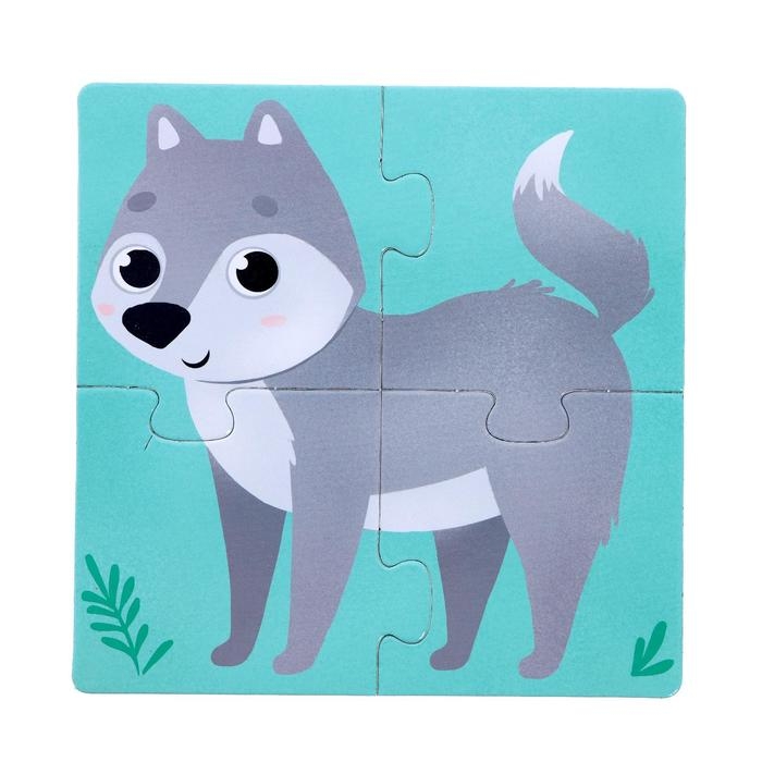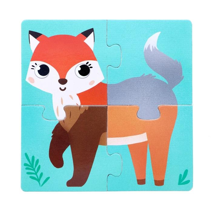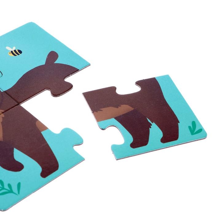 Пазлы 4 в 1 «Собери зверюшку: Кто живёт в лесу?», 4 пазла, 16 деталей