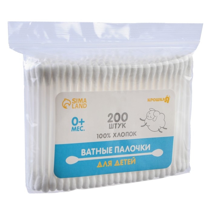 Ватные палочки для детей Крошка Я, коробка 200 шт., наконечник - классика, хлопок/бамбук