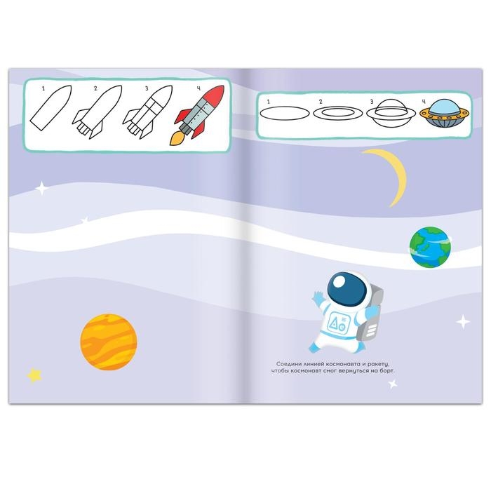 С книгой ребёнок без труда научится рисовать. В этом ему поможет простая пошаговая инструкция и готовые локации, на которых малыш отточит полученные навыки.