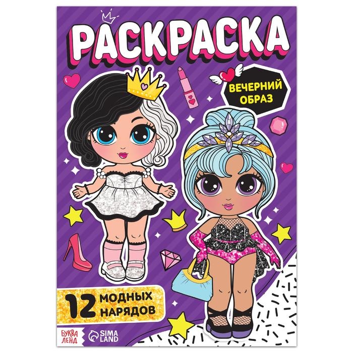 Раскраска для девочек «Вечерний образ», 16 стр., формат А4