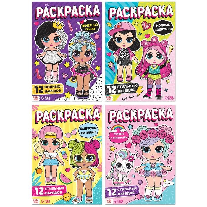 Набор раскрасок для девочек «Стильные девчонки», 4 шт. по 16 стр., формат А4