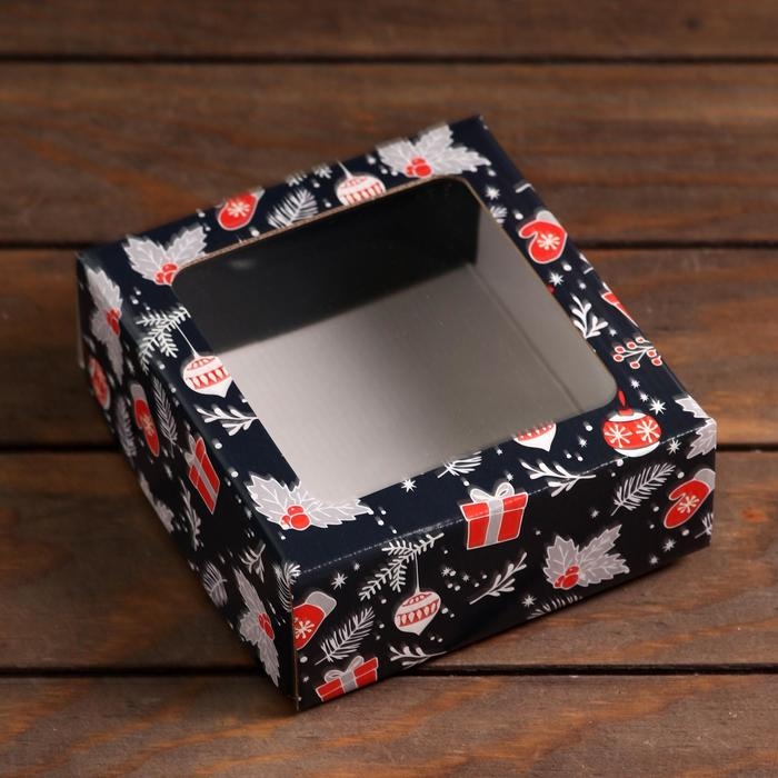 Новый год. Коробка подарочная, крышка-дно, "Зимушка", 14,5 х 14,5 х 6 см.