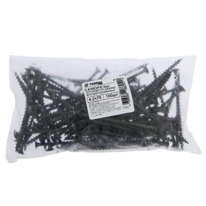 Саморезы гипсокартон-дерево ТУНДРА krep 4.2x75 мм, фосфатированные, 100 шт.