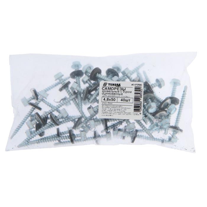 Саморезы кровельные ТУНДРА krep с буром 4.8x50 мм, цинк, 40 шт.