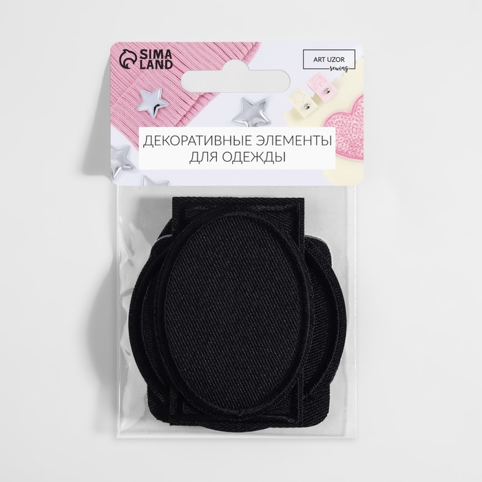 Заплатки для одежды, 15,5 × 9,5 см, термоклеевые, пара, цвет чёрный