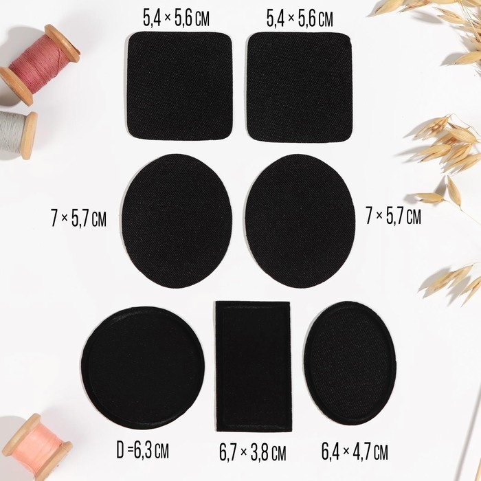 Набор заплаток для одежды, термоклеевые, 7 шт, цвет чёрный