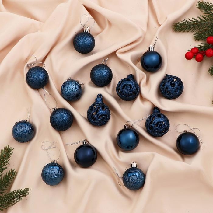 Набор шаров пластик d- 4 см, 16 шт "Торжество" синий