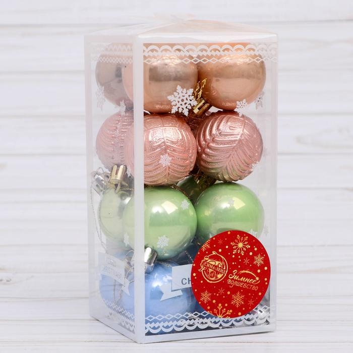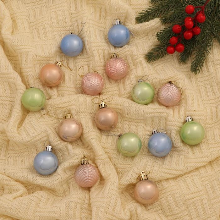 Набор шаров пластик d- 4 см, 16 шт "Астрид листочки" микс