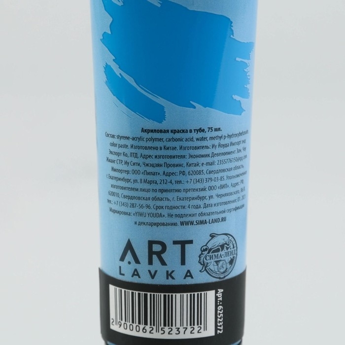 Акриловая краска, цвет небесно-голубой, № 447, в тубе 75 мл, ARTLAVKA