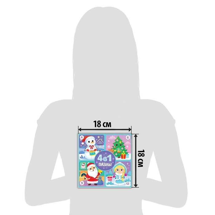 Пазлы 4 в 1 «Новогодний праздник», 4, 6, 9, 12 элементов