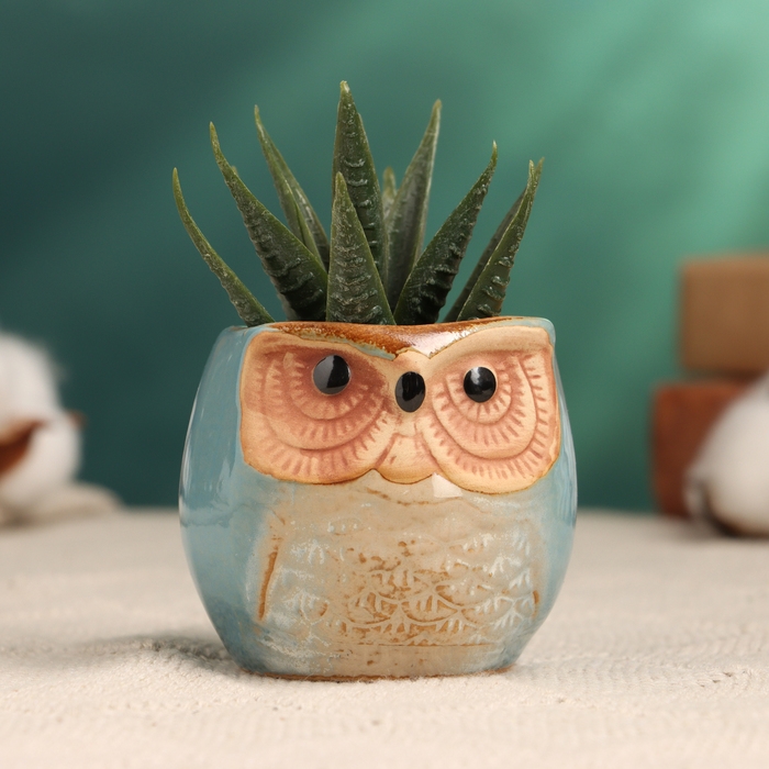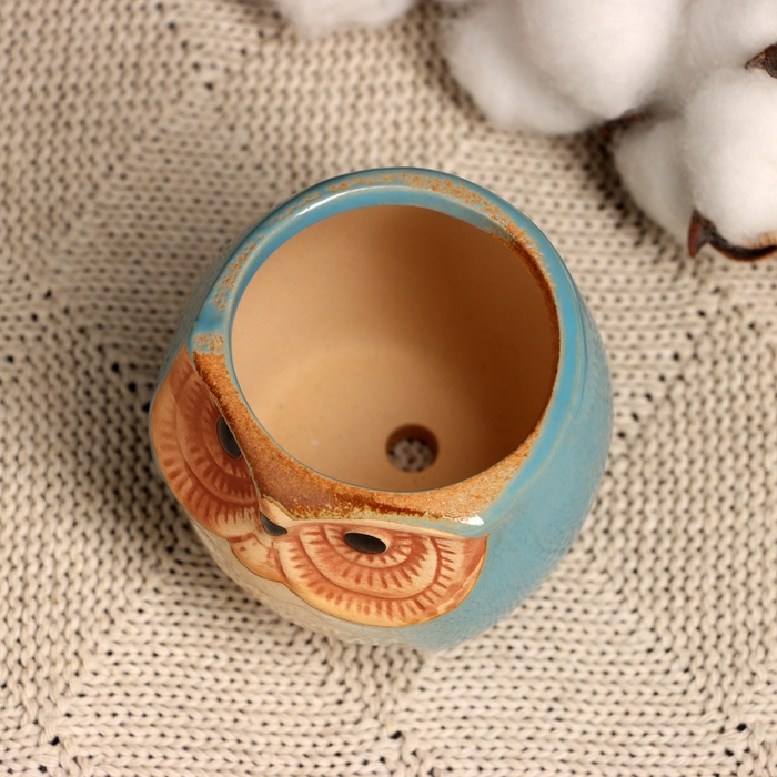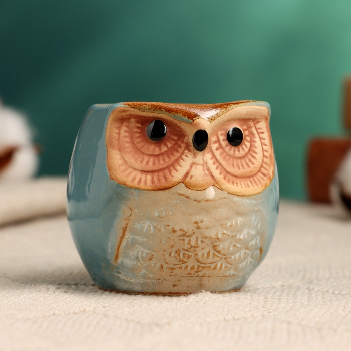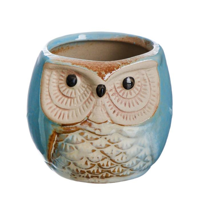 Горшок "Сова Ава" 6,5х6,5х6см, голубой