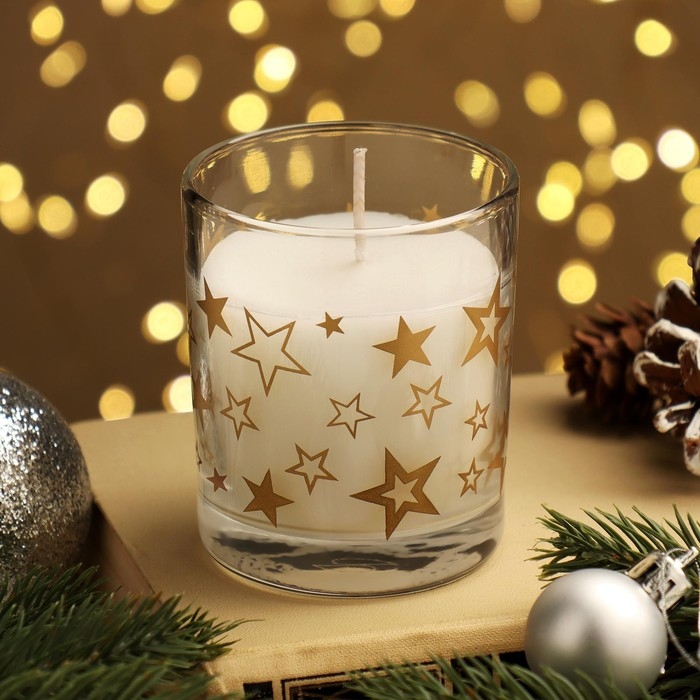 Новогодняя свеча гелевая в стакане Зима это ..«Новый год: Золотой шик», без аромата, скретч-слой, 2,5 х 2,5 х 2,5 см
