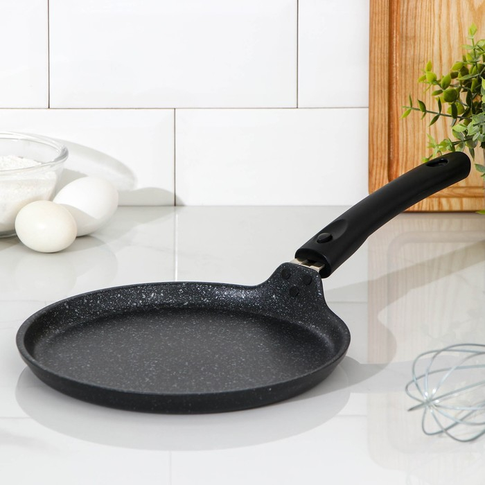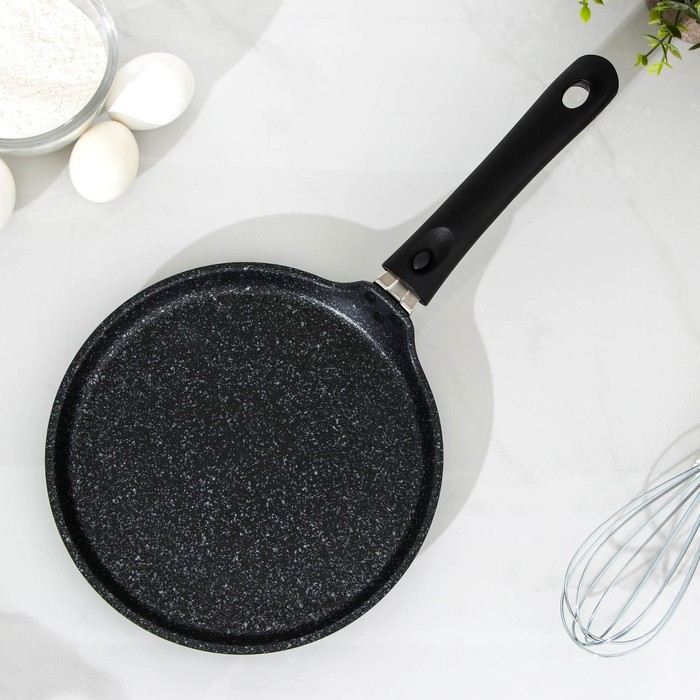 Сковорода блинная, d=22 см, пластиковая ручка, антипригарное покрытие, цвет тёмный мрамор