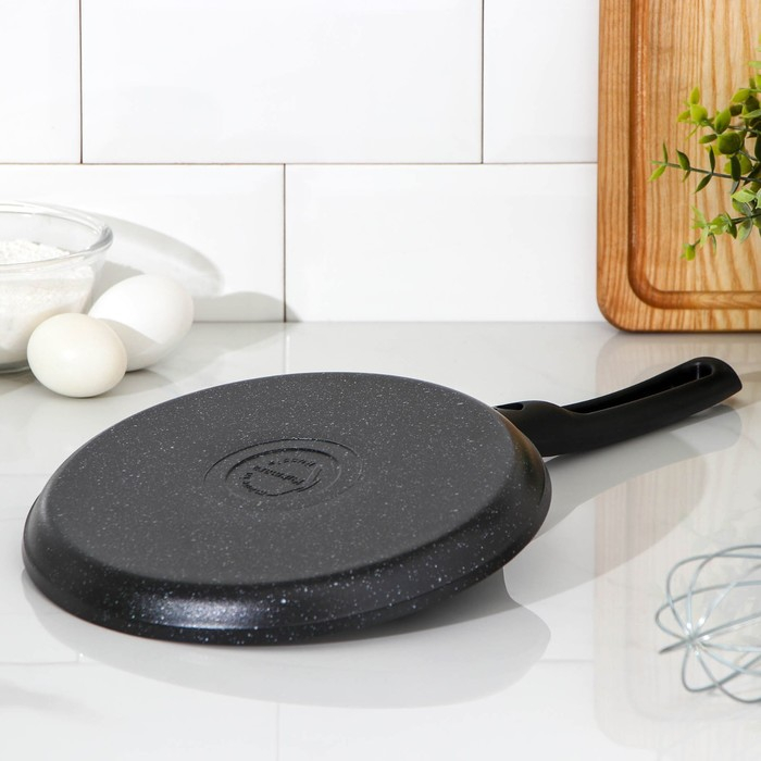 Сковорода блинная «Гранит», d=24 см, пластиковая ручка, антипригарное покрытие, цвет серый