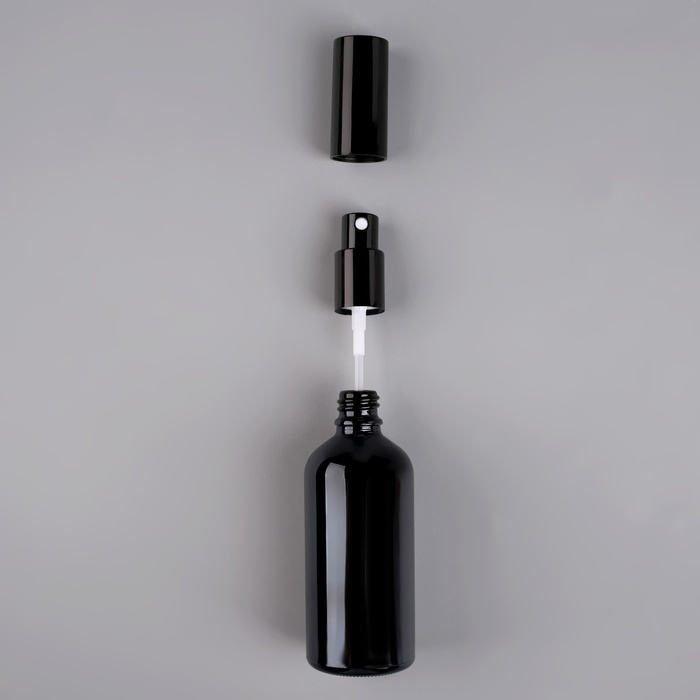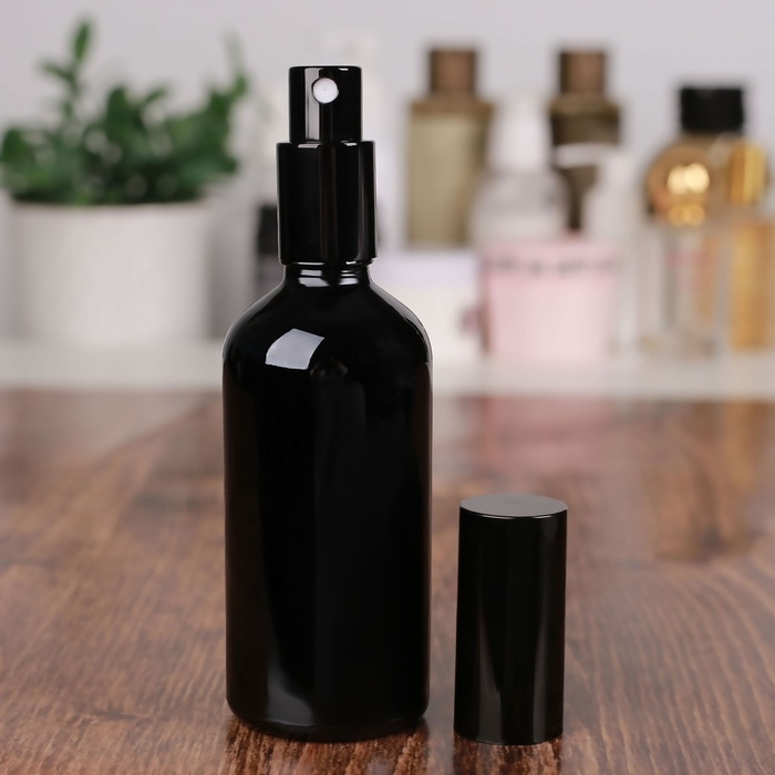 Бутылочка стеклянная для хранения, с распылителем «Black», 100 мл, цвет чёрный