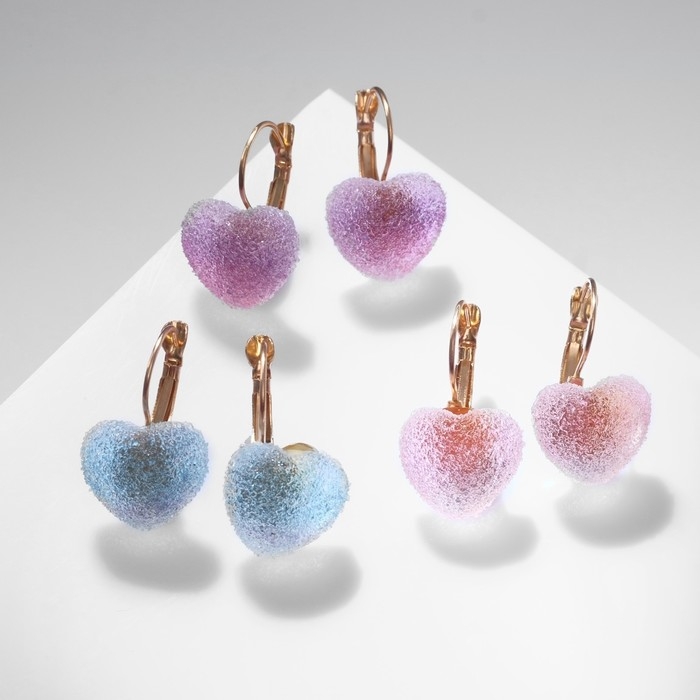 Серьги ассорти «Мармеладные сердечки» в сахаре, цвет МИКС