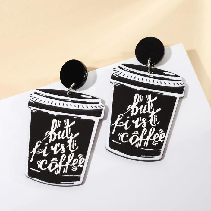 Серьги акрил «Стаканчики кофе», цвет чёрно-белый