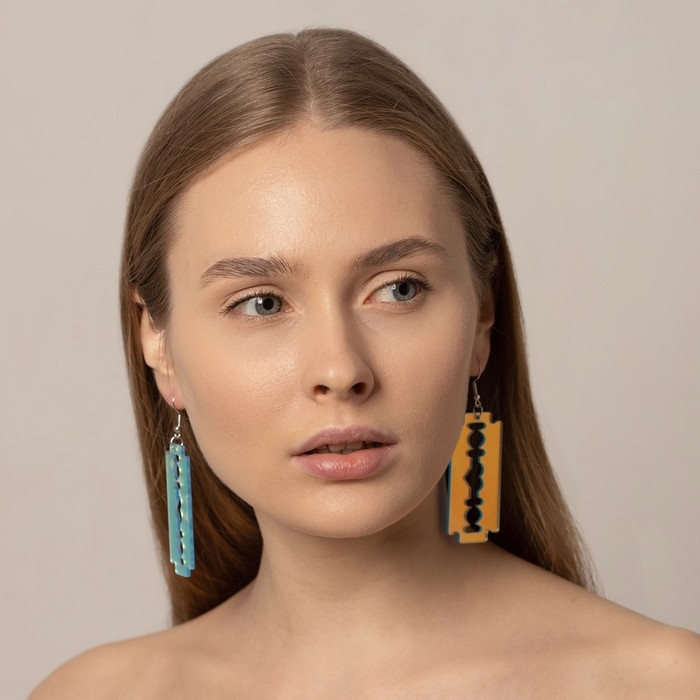 Серьги акрил «Сияние» лезвие, цвет голубой