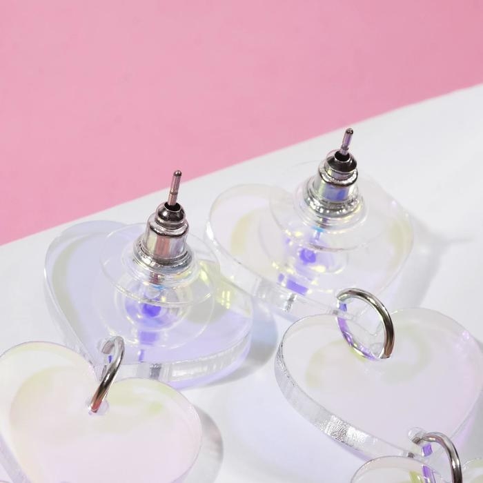 Серьги акрил «Сияние» ряд сердечек, цвет голубой