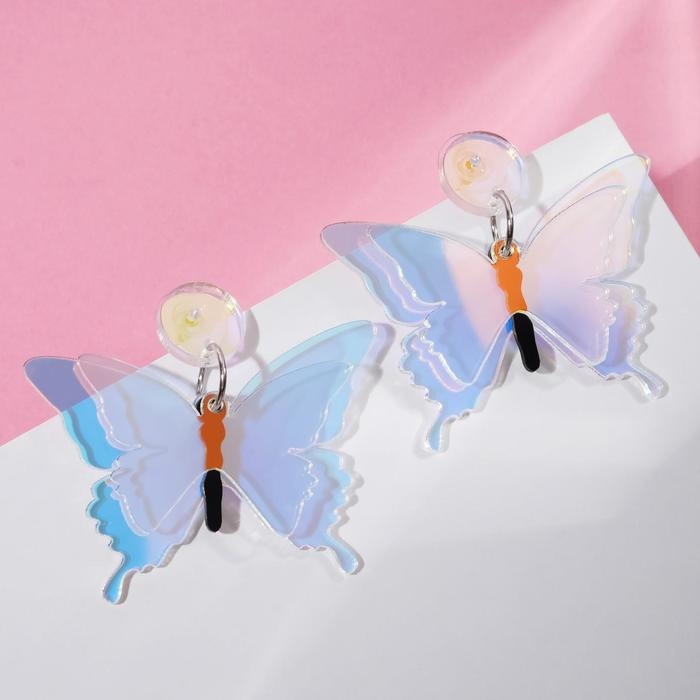 Серьги акрил «Сияние» бабочки, цвет голубой