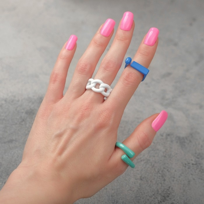 Кольцо набор 3 штуки «Формы», цвет белый, синий, зелёный, безразмерные