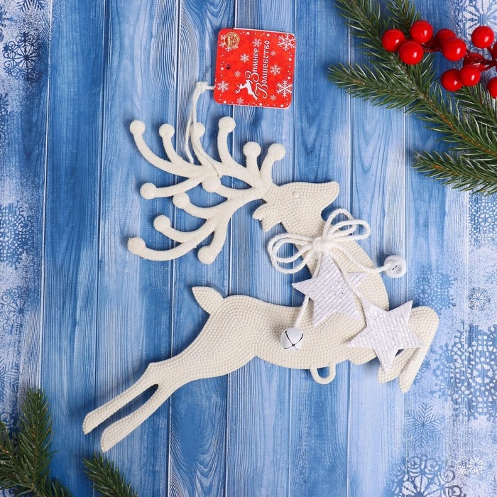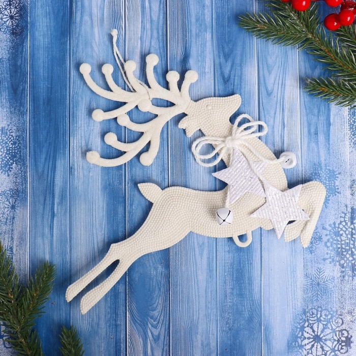 Украшение ёлочное "Олень бегущий со звёздами" 22х24 см, белый