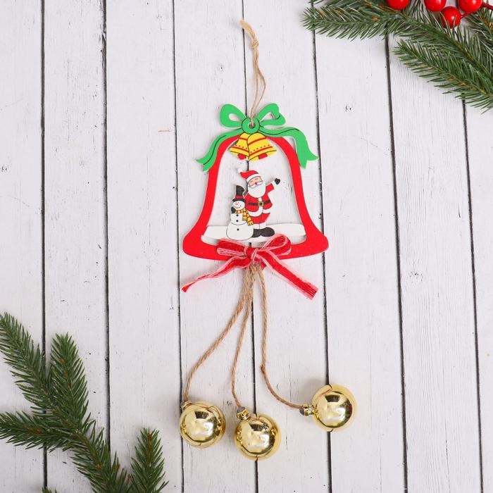 Украшение ёлочное "Колокольчик с шариками" Дед Мороз и снеговик 9,5х25 см