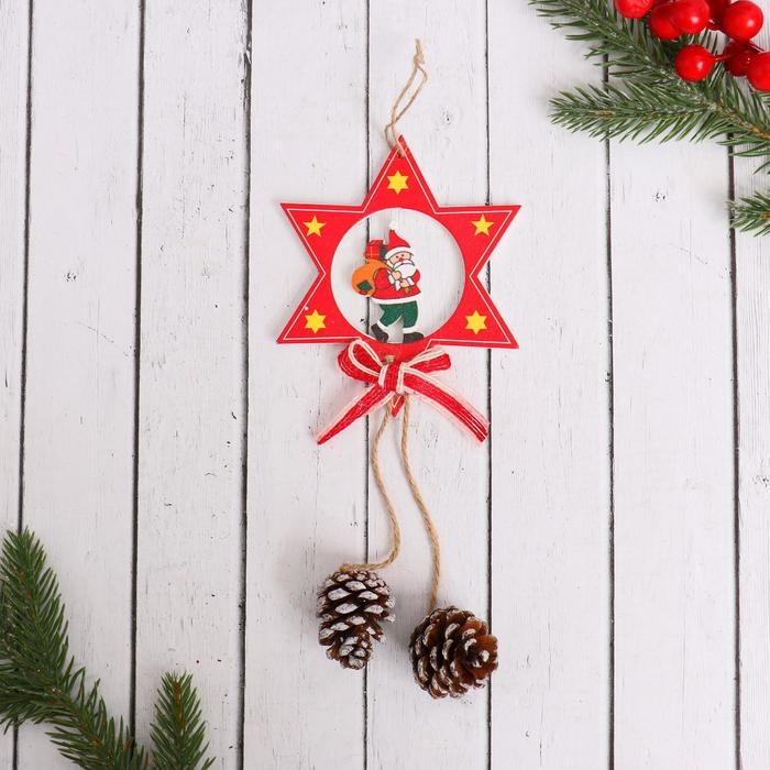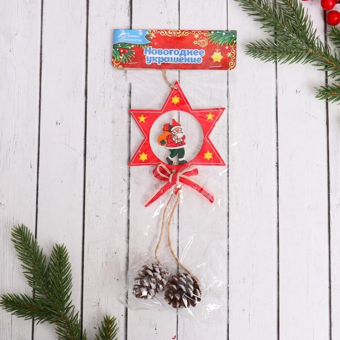 Украшение ёлочное "Звёздочка с шишками" Дед Мороз с подарками 9х21 см