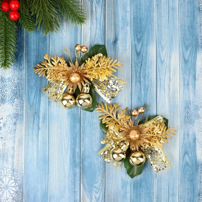 Украшение ёлочное "Зимнее чудо" (набор 2 шт) цветок шарики, 12х11 см, золото