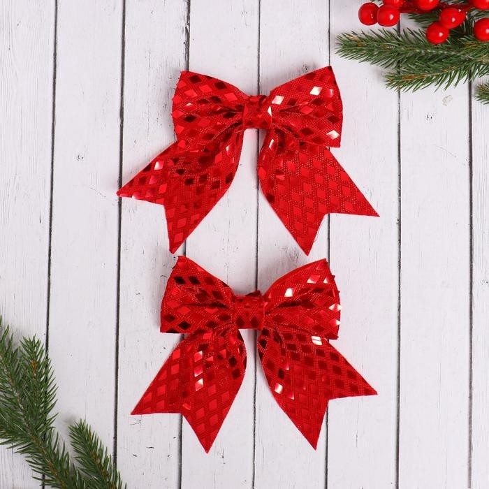 Украшение ёлочное "Бант люкс" (набор 2 шт) 12х11 см, красный