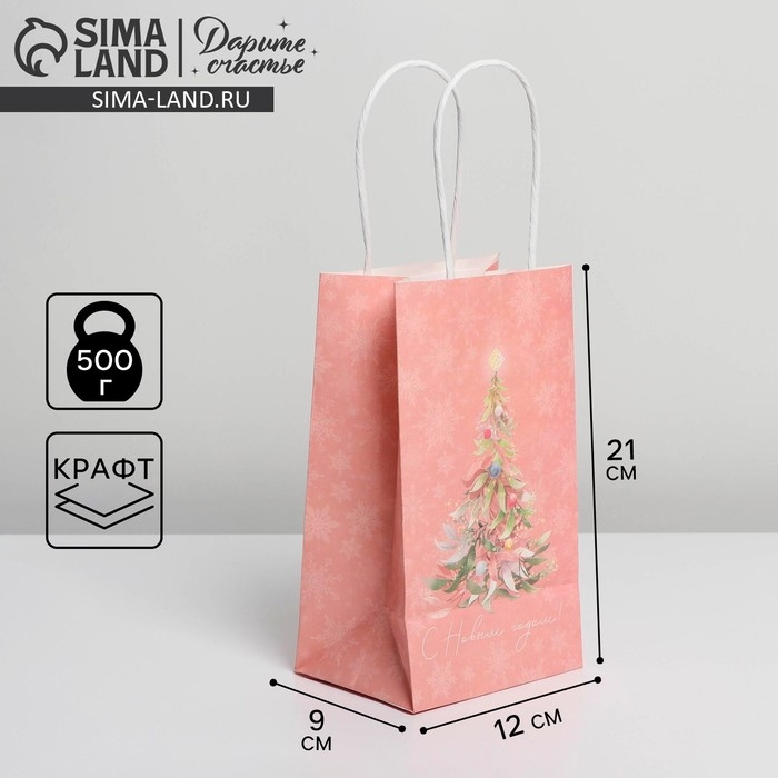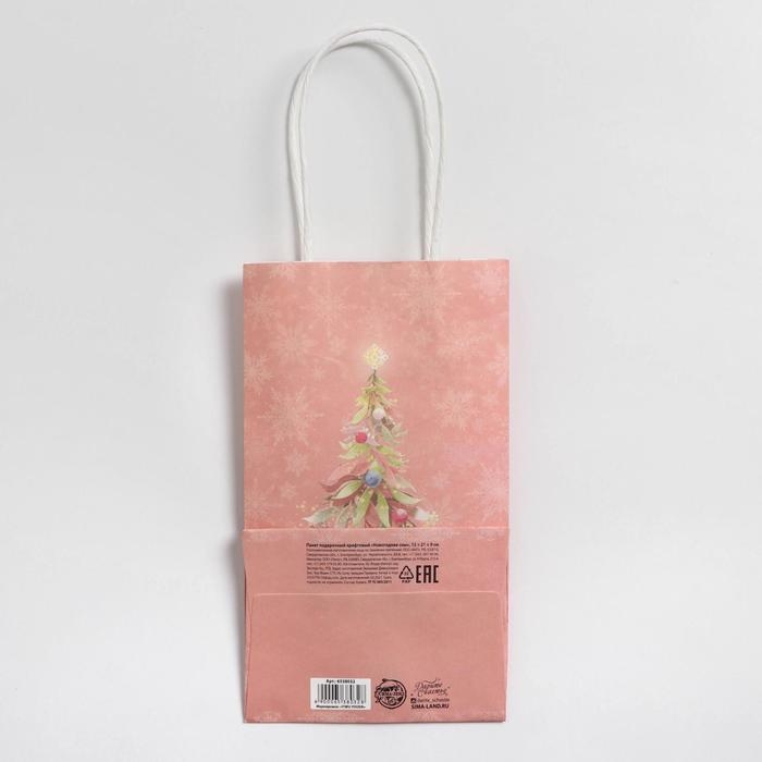 Пакет подарочный новогодний крафтовый «Новогодние сны», 12 х 21 х 9 см, Новый год