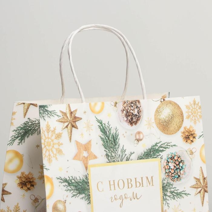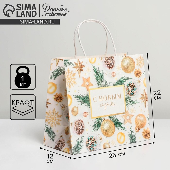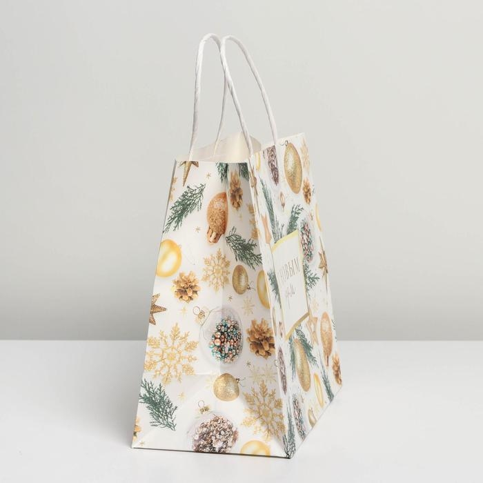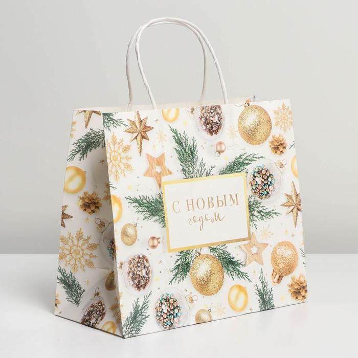 Пакет подарочный новогодний крафтовый «Сказочный праздник», 25 х 22 х 12 см, Новый год