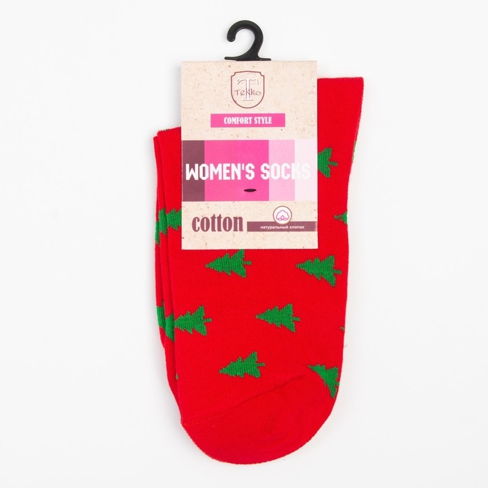 Носки женские «Ёлочки» цвет красный, размер 23-25