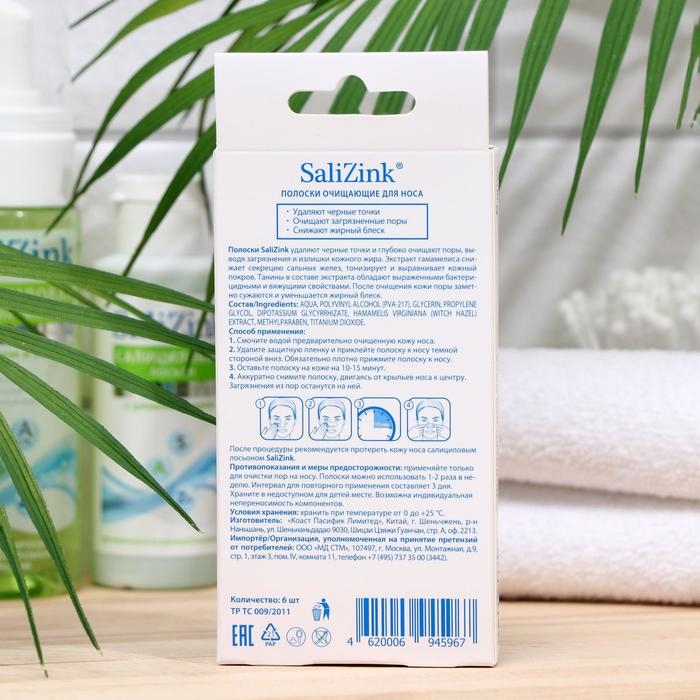 Полоски очищающие для носа Салицинк с экстрактом гамамелиса, 6 шт.