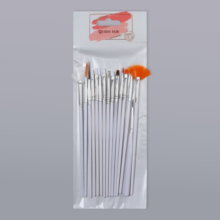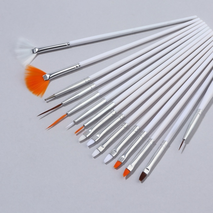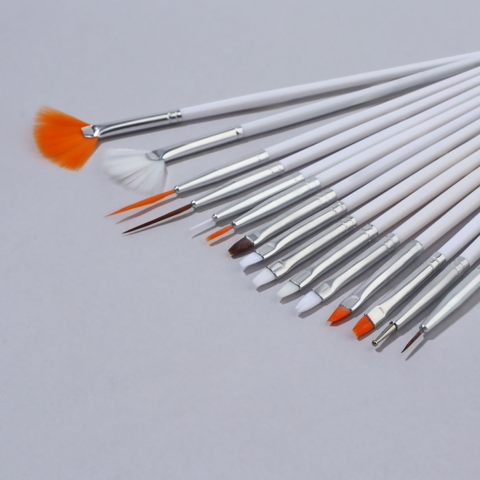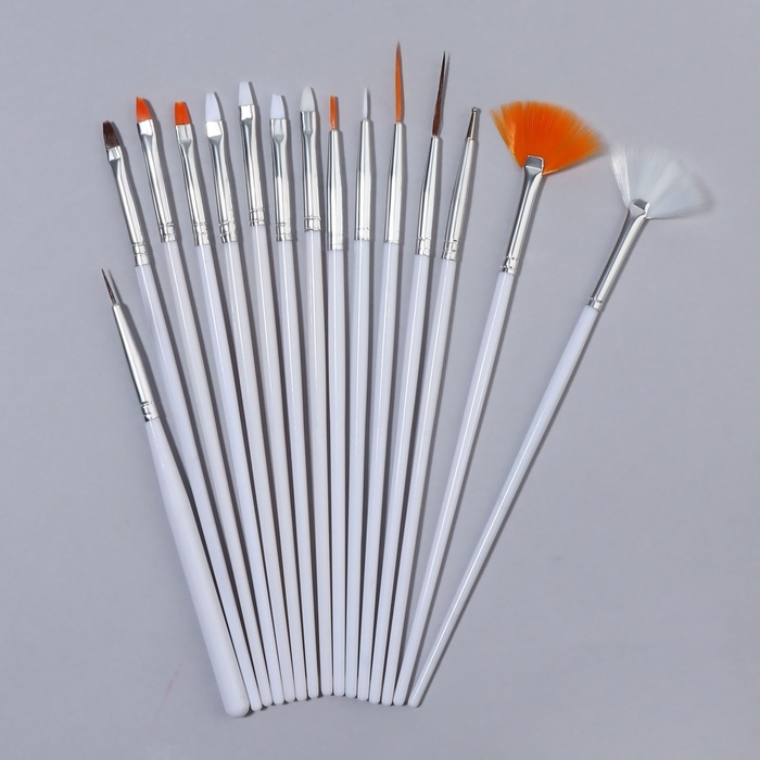 Набор кистей для наращивания и дизайна ногтей, 15 шт, цвет белый