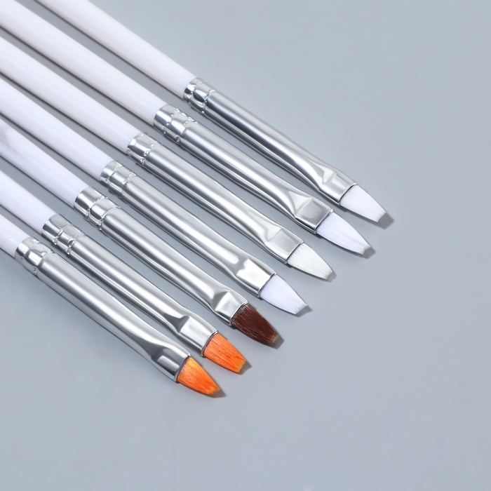 Набор плоских кистей для наращивания и дизайна ногтей, 6 шт, 18 см, цвет серебристый/чёрный