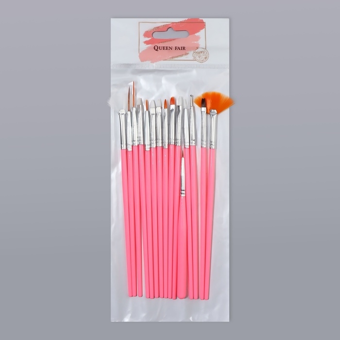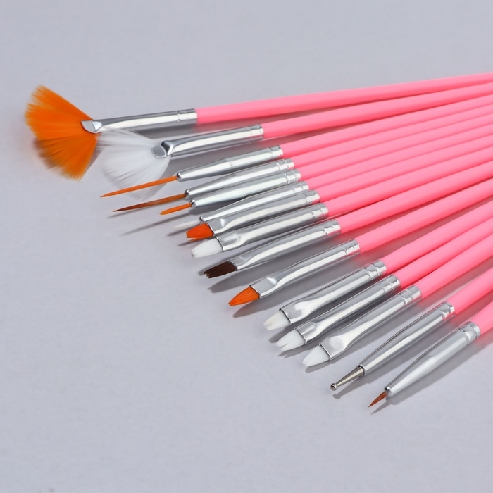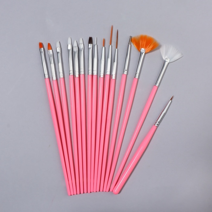Набор кистей для наращивания и дизайна ногтей, 15 шт, цвет розовый