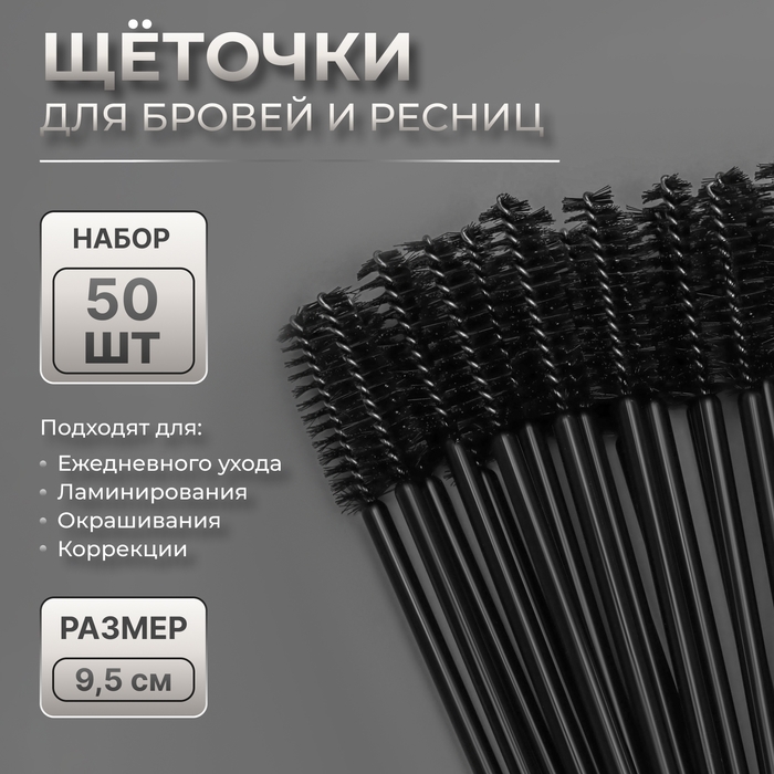 Набор щёточек для бровей и ресниц, 9,5 см, 50 шт, цвет чёрный
