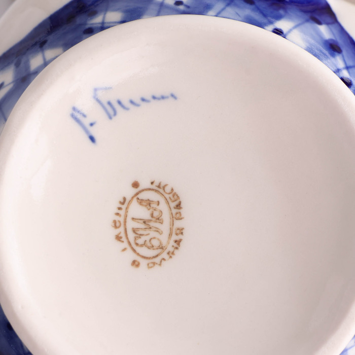 Так появился узнаваемый стиль гжели — синяя пейзажная и растительная роспись, которая соединяется с геометрическим орнаментом на белоснежном фоне. Мастера расписывают каждый предмет только вручную.