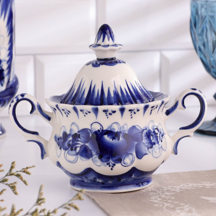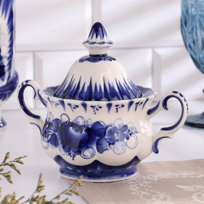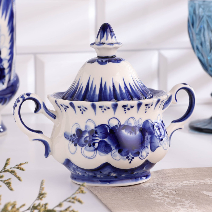 Сахарница "Шатер", гжель, фарфор, 15х18 см