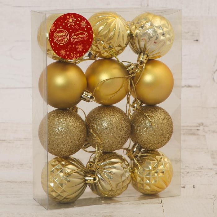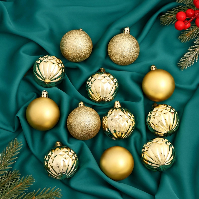 Набор шаров пластик d-5 см, 12 шт "Олимпия грани" золото