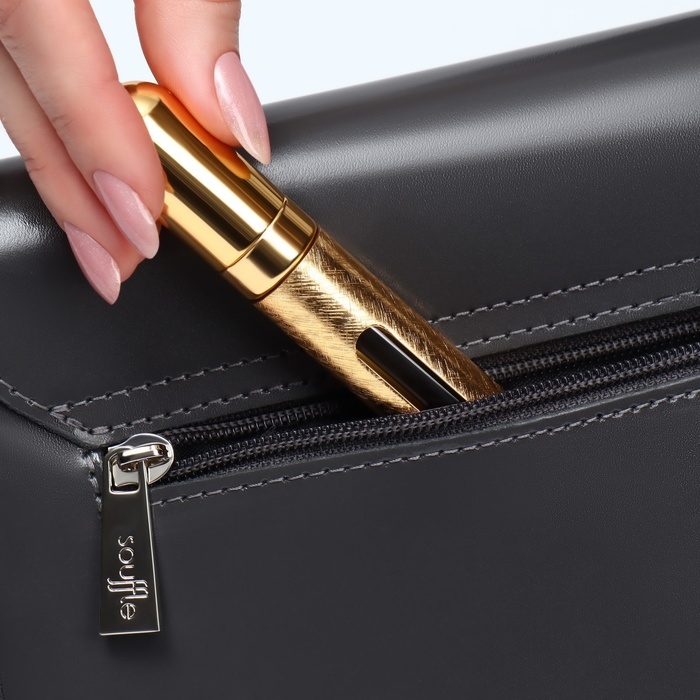 Для любой женщины важно иметь в сумочке всё самое необходимое, поэтому флакон для духов станет вашим незаменимым атрибутом. Перелейте в него свой любимый парфюм – так вы всегда сможете иметь любимый аромат под рукой. Благодаря своей компактности, флакон поможет поддерживать порядок в сумочке. Аксессуар из стекла и металла надёжно сохранит ваши духи от вытекания и позволит контролировать наполненность флакона.
