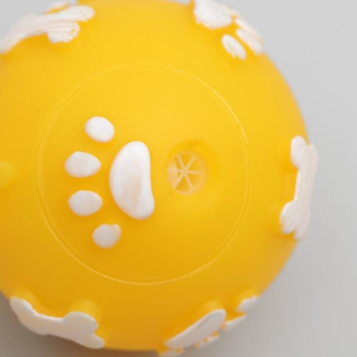 Мячик пищащий "Лапки" для собак, 5,5 см, жёлтый