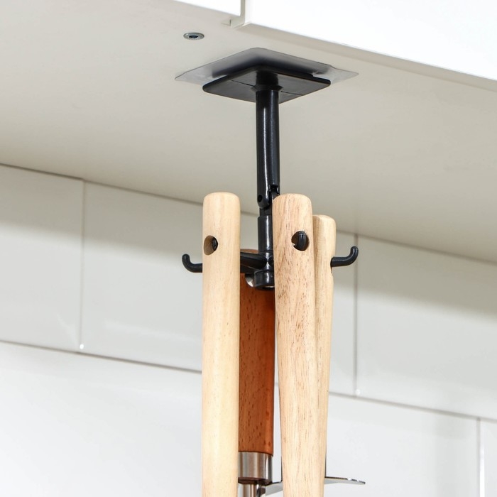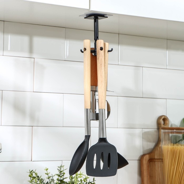 Держатель крепится навесным способом, что позволяет экономить место на кухонной поверхности и создавать комфортное пространство для приготовления пищи. Его универсальный дизайн легко впишется в любой интерьер, добавляя функциональности и эстетики вашему кухонному пространству.