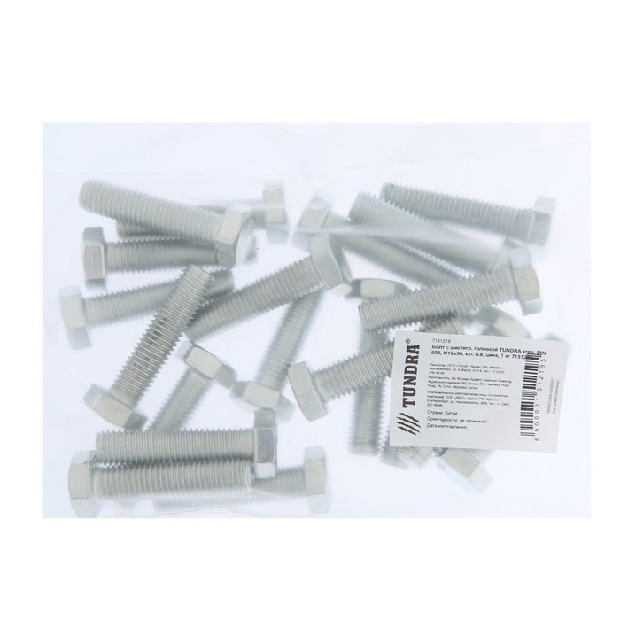 Болт ТУНДРА, оцинкованный, DIN 933, класс прочности 8.8, М12х50 мм, 1 кг