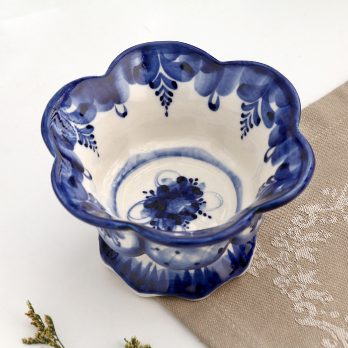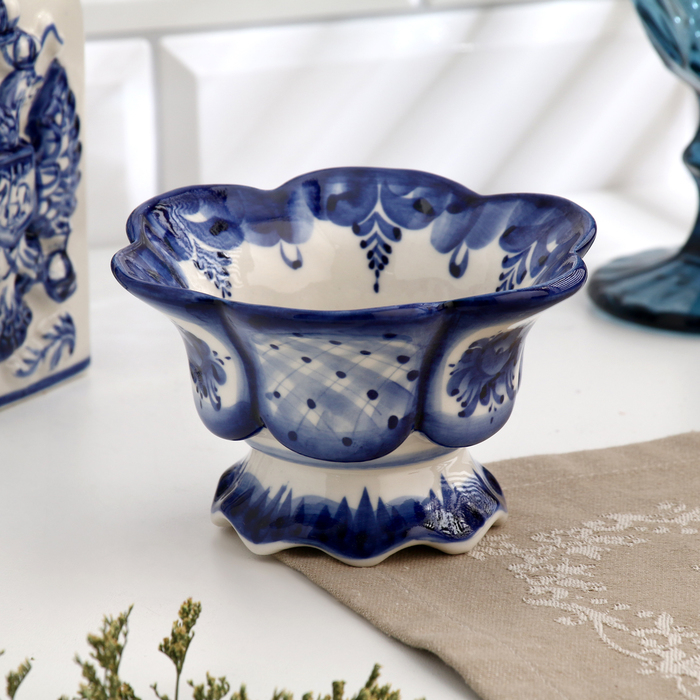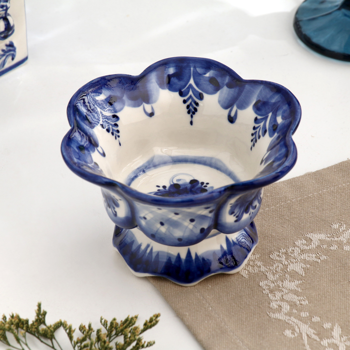 Ваза для варенья, малая, гжель, фарфор, 7х12 см